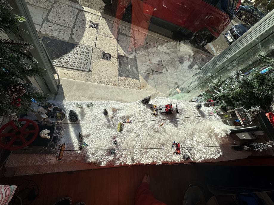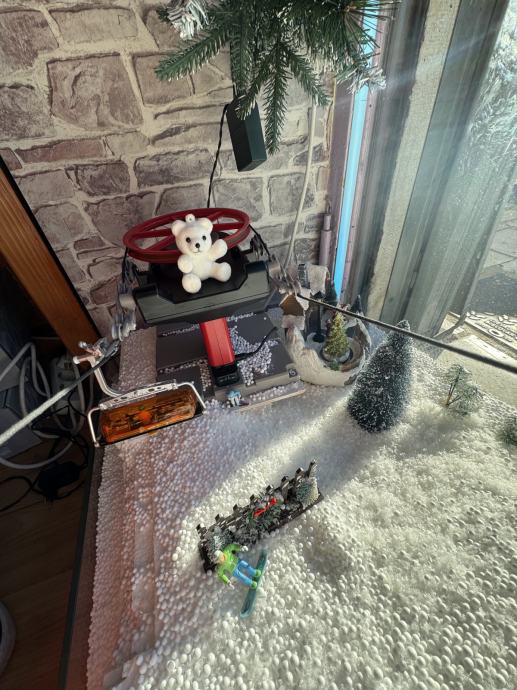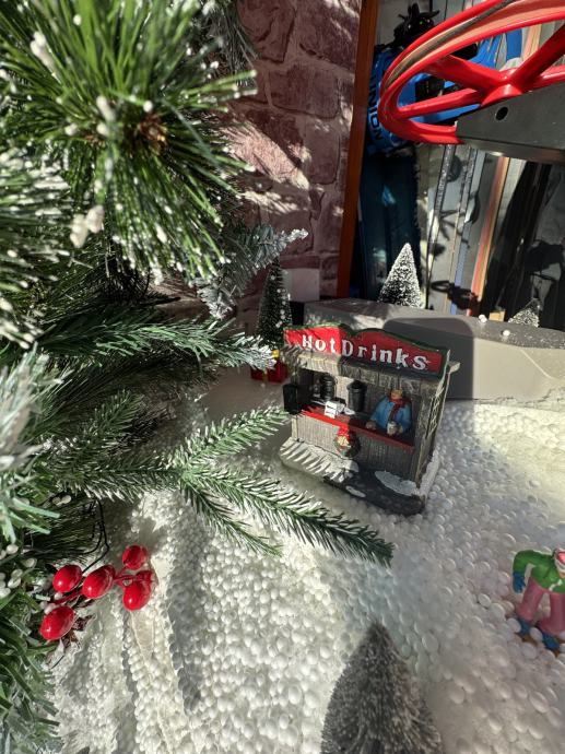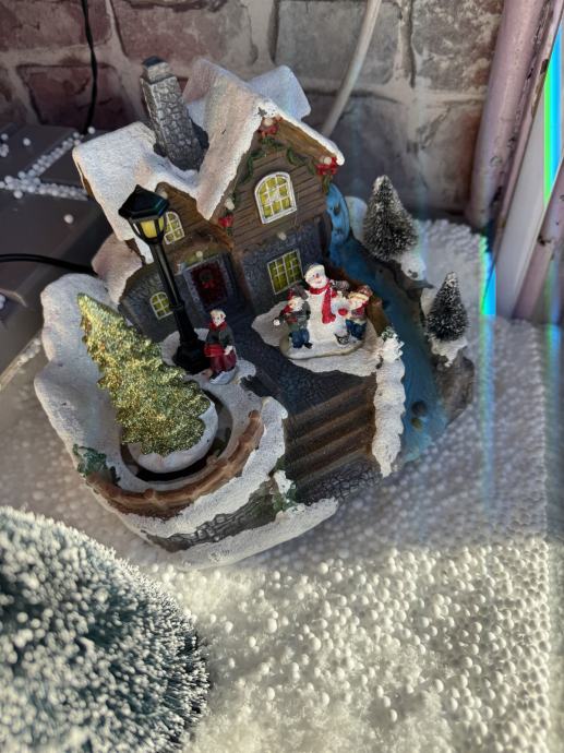 1x kučica s djecom, snjegovićem i borom, na baterije i bor se okreće