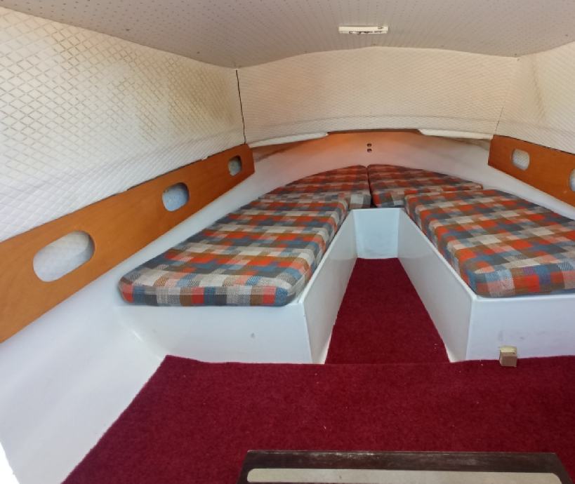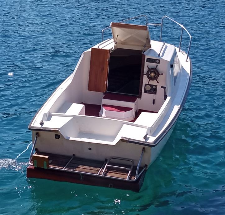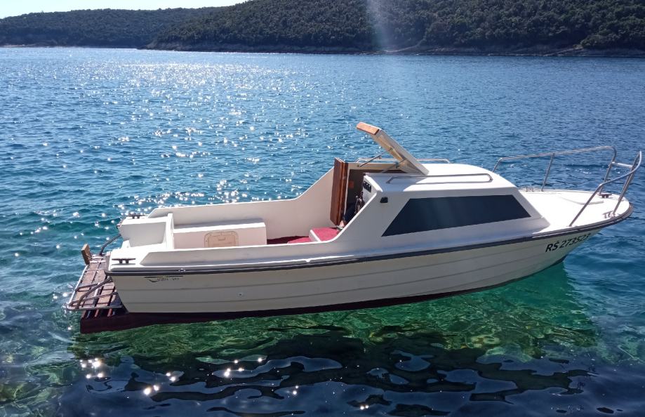 Adria 590 sa unutarnjim motorom Lombardini LDW1204 ,4 cilindra,33 ks,krmeni spojler,platforma sa škalama i nosačem pomoćnog motora,navigacijska svijetla,inox rezervar za gorivo,akumulator, samoprazneci kokpit,kaljuzna pumpa,inox ograda,sidro,tapicirani jastuci u kabini.Maksimalna brzina 11 nm,putna brzina 8 nm.Barka je trajno registrirana.