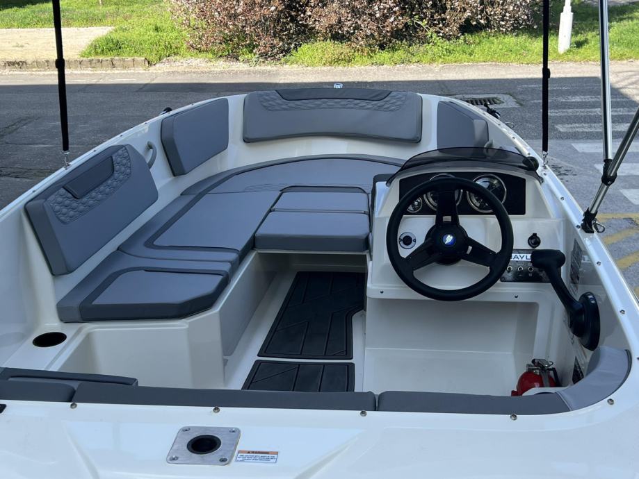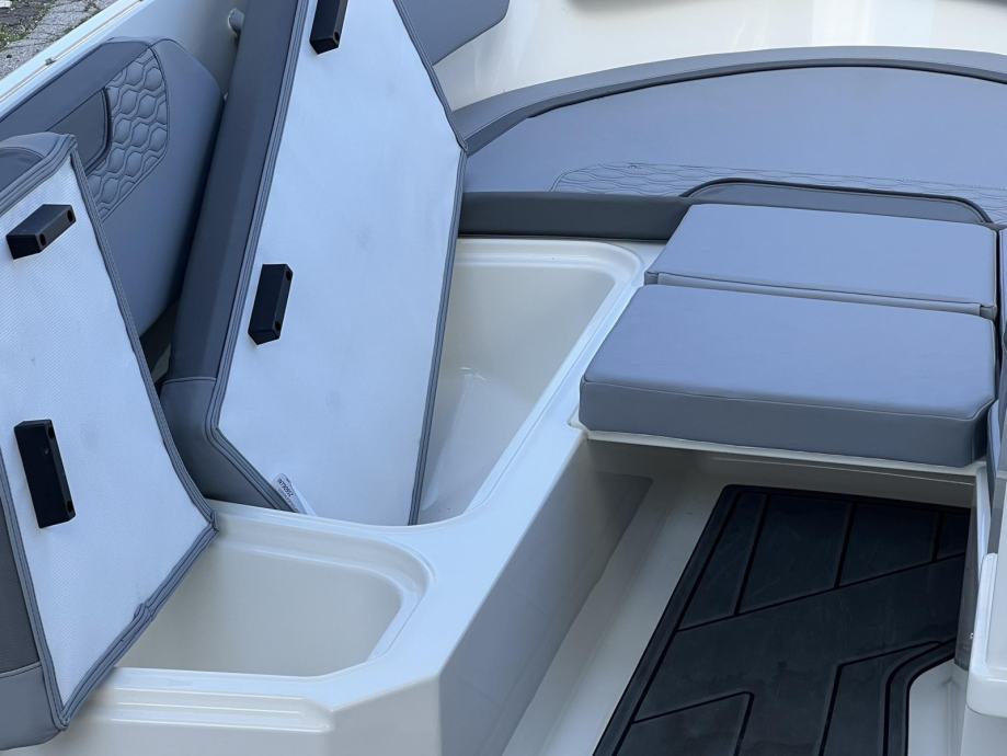 Dodatna oprema: Bimini tenda krov s torbom, zaštitna cerada, obloga palube, stup za vuču skija, jastuci za popunu pramca, sunčalište na lijevoj strani, servo upravljač, RAM držač