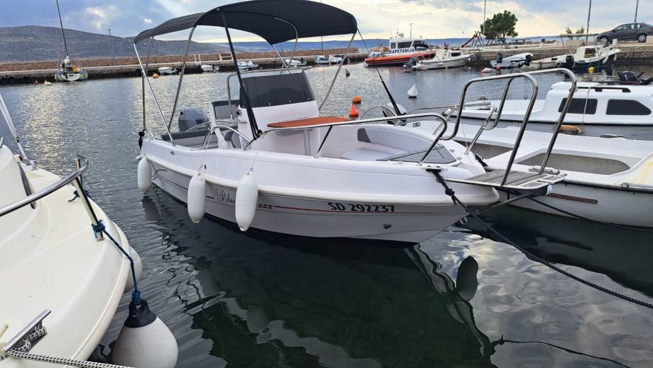 Težina plovila je 550 kg, kapacitet 7 osoba, prostrano prednje sunčalište, široka klupa i konzola, veliko spremište, navigacijska svjetla, stepenice, kaljužna pumpa, komplet jastuci od neupijajuće spužve, inox ograda, radio sa zvučnicima, bimini inox tenda, noga za stolić sa pločom, rezervoar goriva 90 lit., rezervoar za čistu vodu s pumpom i tušem 52 lit., baterija sa kutijom i ugradbenom sklopkom, dodatna baterija 100Ah startna servisna sa instalacijom, instrument brojilo okretaja, filter separator, pokazivač trima, GPS/FISH FINDER HUMMINBIRD HELIX 7 sa karticom.