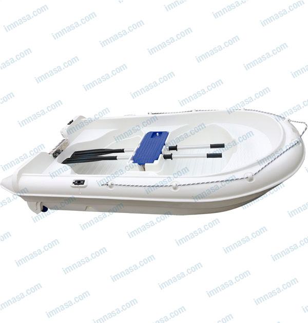 Brodica od polietilena visoke gustoće u bijeloj ili zelenoj boji, 250 NEP WHITE model, norma ISO 6185-2, od 3 do 4 osobe, maksimalna težina 250 kg, težina plovila 45 kg, s 2 pretinca i 2 kotača za vuču i jednim prstenom za vuču. Sadrži 2 vesla i konop.