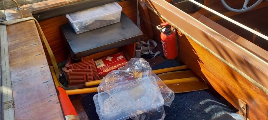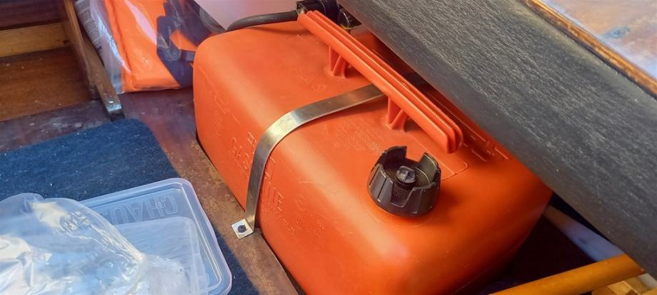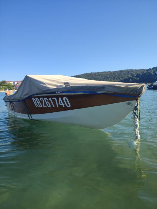 Motor je Johnson koji je kupljen sa gliserom i kao novi je stajao desetak godina te ima 10-ak sati rada. Napravljen je kompletan servis: zamjena ulja u peti, zamjena svjećica, čišćenje rasplinjača, čišćenje pumpe, filtera i separatora goriva, zamjena impelera, čišćenje zink protektora...tj. sveg potrebnog iz predostrožnosti jer je motor kao nov ali nije uopće upotrebljavan...
