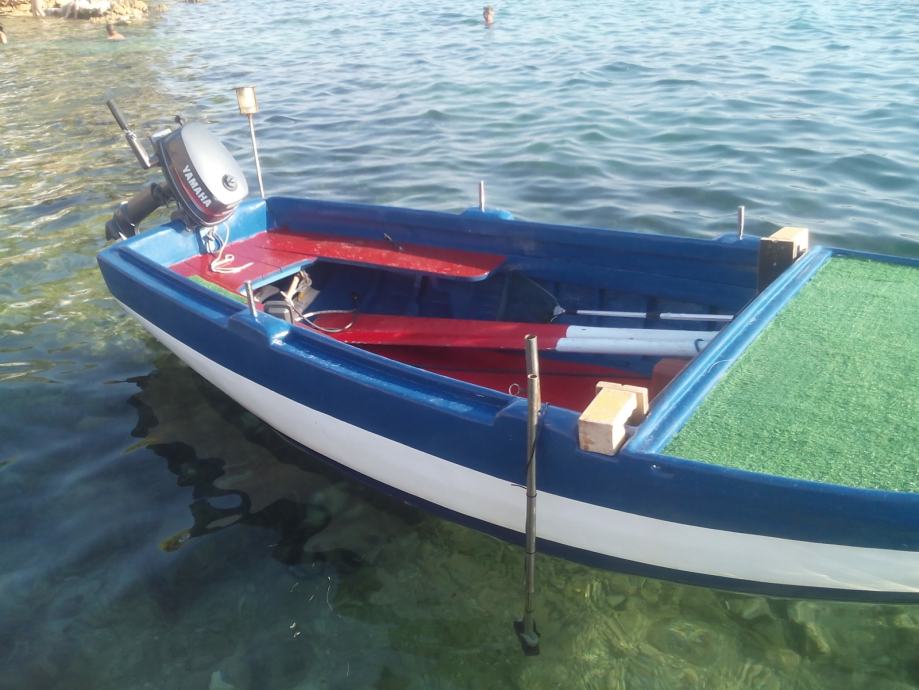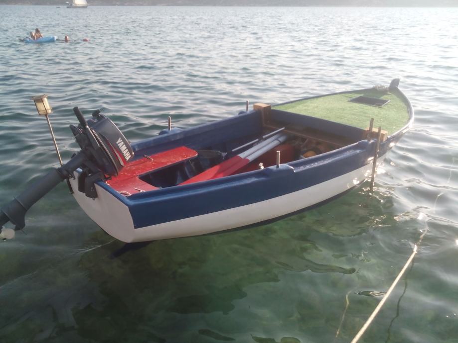 Drveni brod, dužine 4.80, plastificirano vanjsko korito i prova(kuverta), idealan za mali ribolov i lignjarenje, može nositi veliki teret -mreže/vrše (široka prova), drvo u izuzetno dobrom stanju, vesla, noćno svjetlo, održavan, renoviran 2015, motor yamaha 42T 6ks (izuzetno pouzdana i štedljiva). Vanbrodski motor je star 2 godine i 100njak sati rada