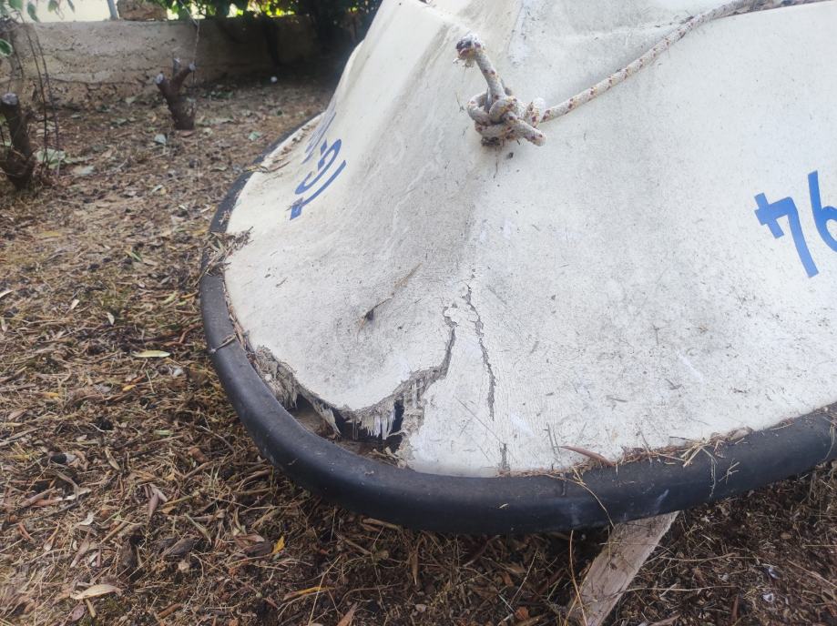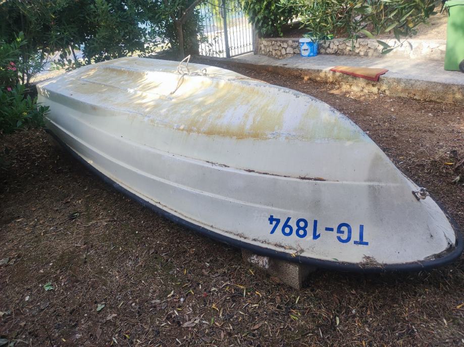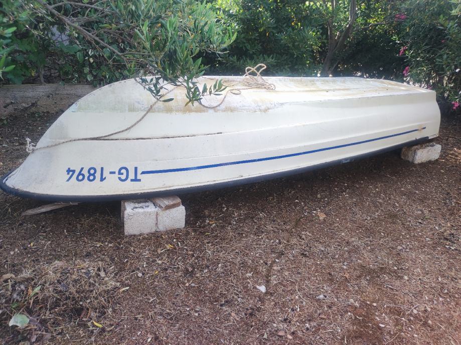 Elan 400. Brod pojačan prije 2-3 godine ali oštećena prova u nevremenu. U plovnom stanju. Oštećenje estetske prirode. Registriran i uredni papiri. Inox postolje za motor.