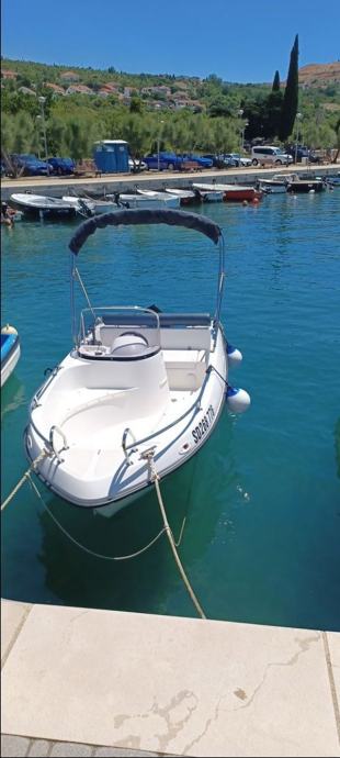 Ima tendu, zimsku ceradu, novi akumulator, GARMIN navigacija, spremnik za gorivo i vesla.