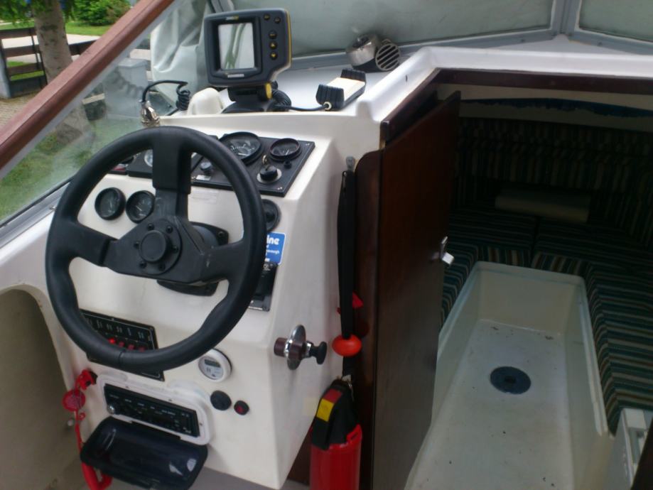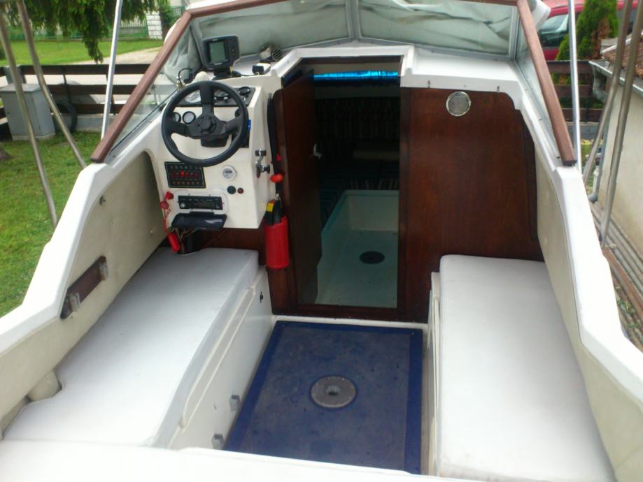 Gliser ima kabinu stajaće visine (2 do 3 ležaja) sa odvojenim prostorom sa novim kemijskim WC-om, kuhinjskim blokom ,frižiderom na 12v i sudoperom sa slatkom vodom. Rezervoar za vodu od 70 litara u pramcu za kuhinju i tuš. Rezervoar za gorivo 150 lit. u trupu. Ima prostrani kokpit sa novim tapicirungom i tendom. Plovilo je kompletno obnovljeno i u odličnom stanju sa svom mogućom opremom (solar 120W sa 2 nova akumulatora, električni vinch LOFRANS sa 40 metara lanca i DANFORT sidrom, fishfinder, bokobrani, pojasevi, konopci,rezervno sidro, vatrogasni aparat, radio sa 4 zvučnika, itd. Prikolica sa dvije osovine i naletnom kočnicom, nove gume,nova signalizacija-kao nova. Gliser se nalazi na suhom u Turnju pokraj Biograda i moguća je probna vožnja.