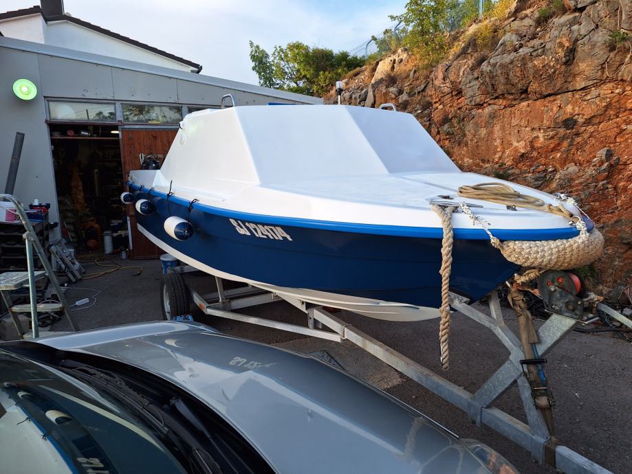 renoviran komplet i pofarban, 5.50 metara sa novim tohatsu 50 mfs motorom rezervoar novi od 25 litara i pomocni motor suzuki 2.5 iz 2015 godine sa 3 sata rada pom sreden sa novom strujom nove komande i sajle novi volan, novi garmin sonder,solar 110w sve novo baterija 12v 120 Ah. Gliser je ispravante ga prodajem,zbog bolesti cijena je 12000 eura,sve o gliseru na linku ispod. nahttps://www.kvarnerplastika.hr/view.asp?idp=7&c=2
