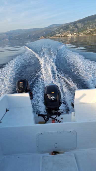 kvarner plastika gliser pg 550 cabin 2005 godina samopaljajuci sa novim tohatsu 50 mfs motorom duga noga i daljinske komande motor ima 120 sati na lignjolovu i panuli i jos je pod garancijom te napravljen prvi servis i pomocni motor suzuki 2,5 ks 2015 god, rezervoar 24 litre tohatsu. novigarmin sonder i nova solar baterija 12v 120 Ah i solarni panel 110 w .zbog nagle bolesti prisiljen sam prodati za 12000 eura hitno ili zamjena vidi nize.ko poznaje taj gliser zna o kakvom se gliseru radi,cijena novog glisera bez motora je 12,634eura a novi tohatsu 50mfs duga noga kosta 7400 eura kliknite na donja dva linka za info