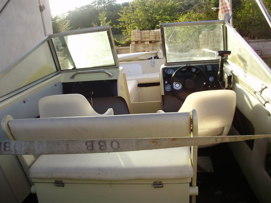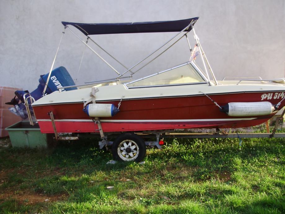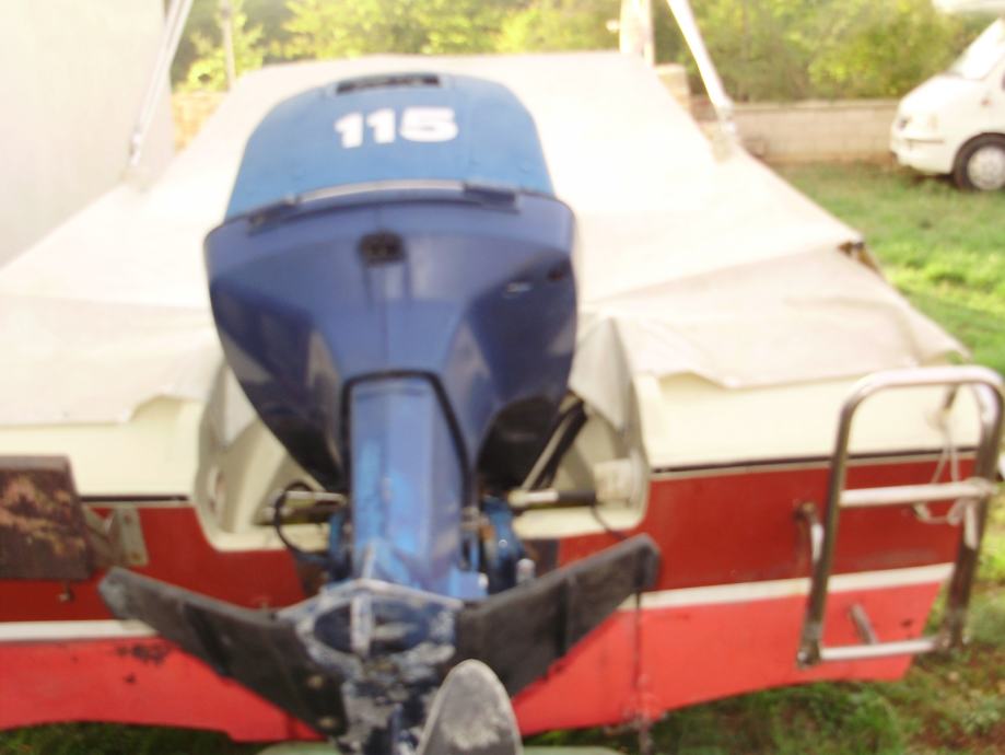 gliser, 5m. trimaransko dno - izuzetno stabilan, v.m. Evinrude 115 ks 2T. motor servisiran svake god. zimska i ljetna tenda, signalizacija, nova baterija, oprema, nosač pomočnog motora, ljestve,sređen trajno reg.