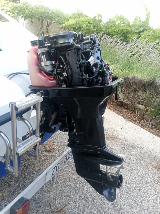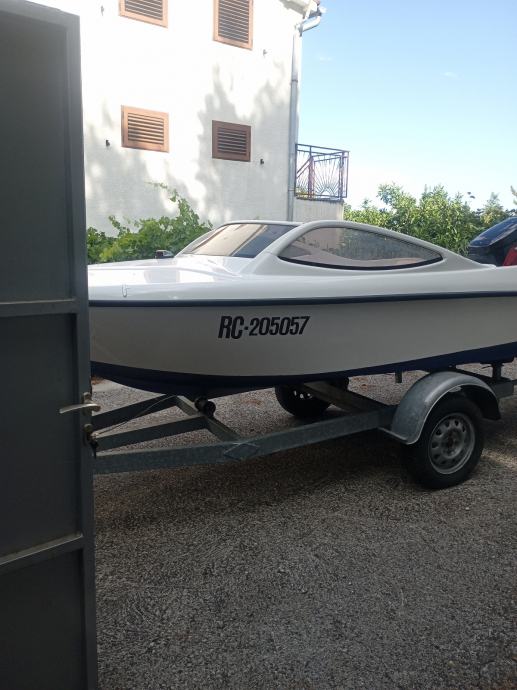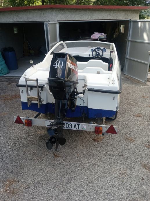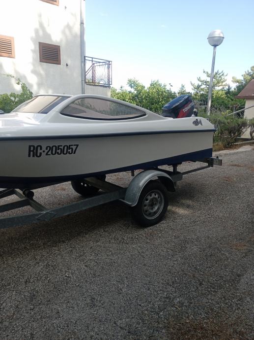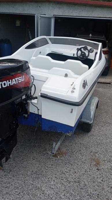 Sportski Gliser Pirana 380,trajno registriran, sa ugrađenim rezervoarom za benzin 50 lit.,brzinomjer ,ljestve za ulazak, svijetla,jako malo korišten,garažiran,putna brzina glisiranja 25 milja,cerada za gliser .Motor Tohatsu 40 HP , god. proizvodnje 2015 ,3 cilindra ,dvotaktni sam uzima ulje,korišten 10 sati.Konzerviran u ovlaštenom servisu.Prikolica vruće pocinčana,može u more,registrirana 3 god.