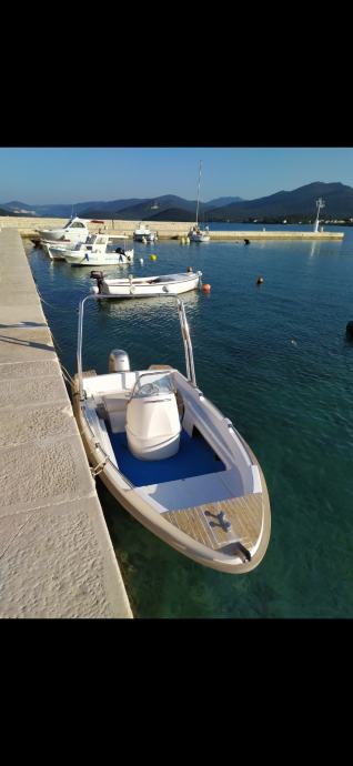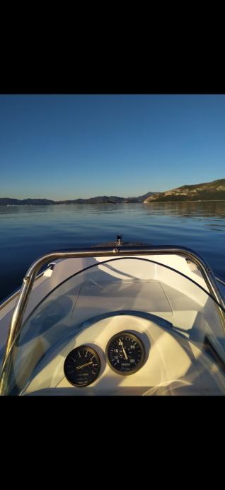 Prodajem gliser Rio 400. Gliser je kompletno obnovljen 2020 godine. Za razliku od originala uradjene su neke preinake. Ugradjena je centralna konzola,klupa za sjedenje je pomaknuta nazad i ispod nje je veliki prostor za stvari,iza klupe je prostor za rezervar,akumulator i kaljuznu pumpu. U pramcu ima jos jedan spremnik za konope i sidro. Sve ima svoj poklopac i moze se zakljucati. Dodani su spojleri radi stabilnosti glisera. Takodjer je ugradjen inox roll bar sa svim svjetlima i trubom,tikovina na pramcu i krmi radi vizualnog izleda. Penta je Honda 30 koju sam kupio od prvog vlasnika kojeg poznajem. Uradjen je kompletan servis,izmjenjeni vanjski i unutarnji cinkovi te sinkronizacija karburatora. Penta radi odlicno i jako malo trosi.