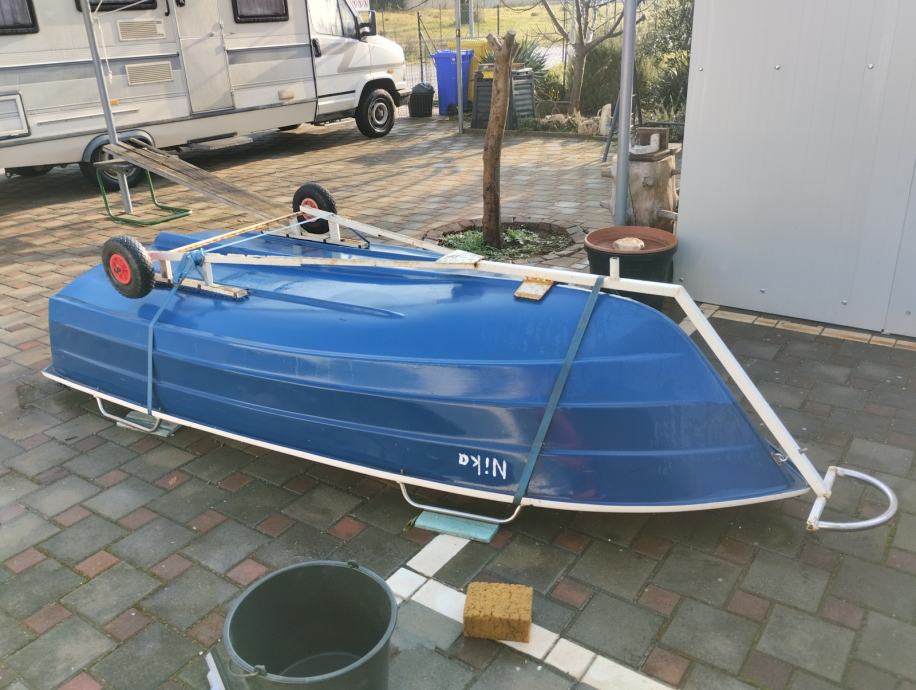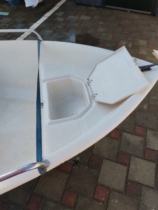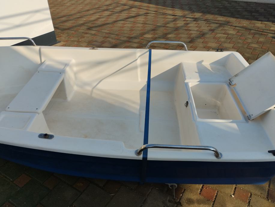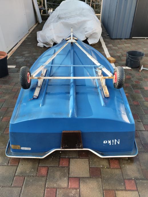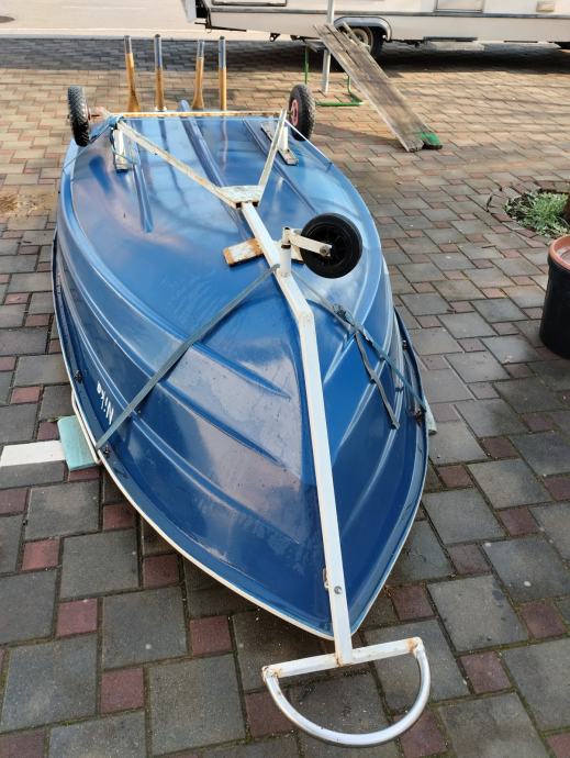 mali čamac od stakloplastike . proizvoden u češkoj, Dužina na vodenu liniju 2.5 m,preko svega 3 m, največa širina 1.35 m. U dobrom stanju . za rućnom prikolicom. vesla i sidro .
