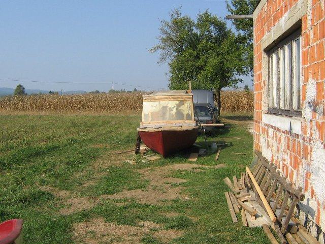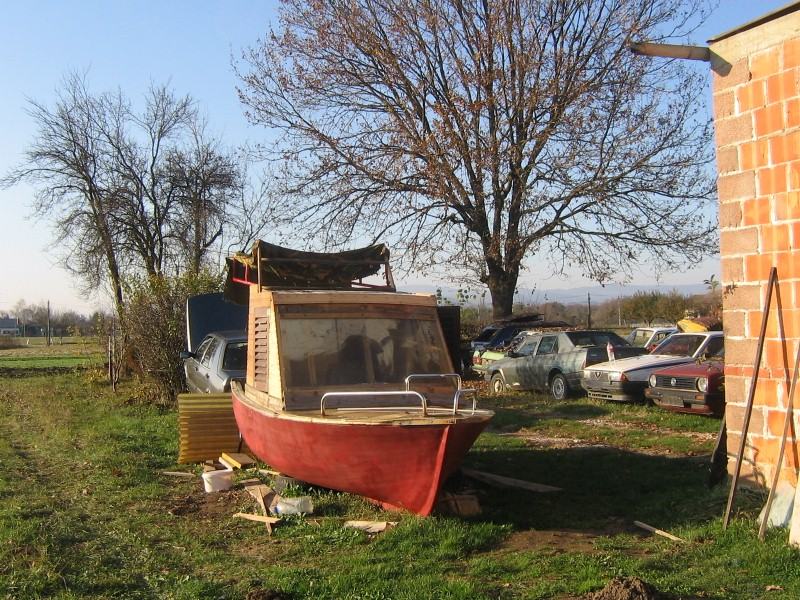 brodica dužine oko 5 m u izgradnji ,troslojno plastificirana,spremna za rijeku-bez papira