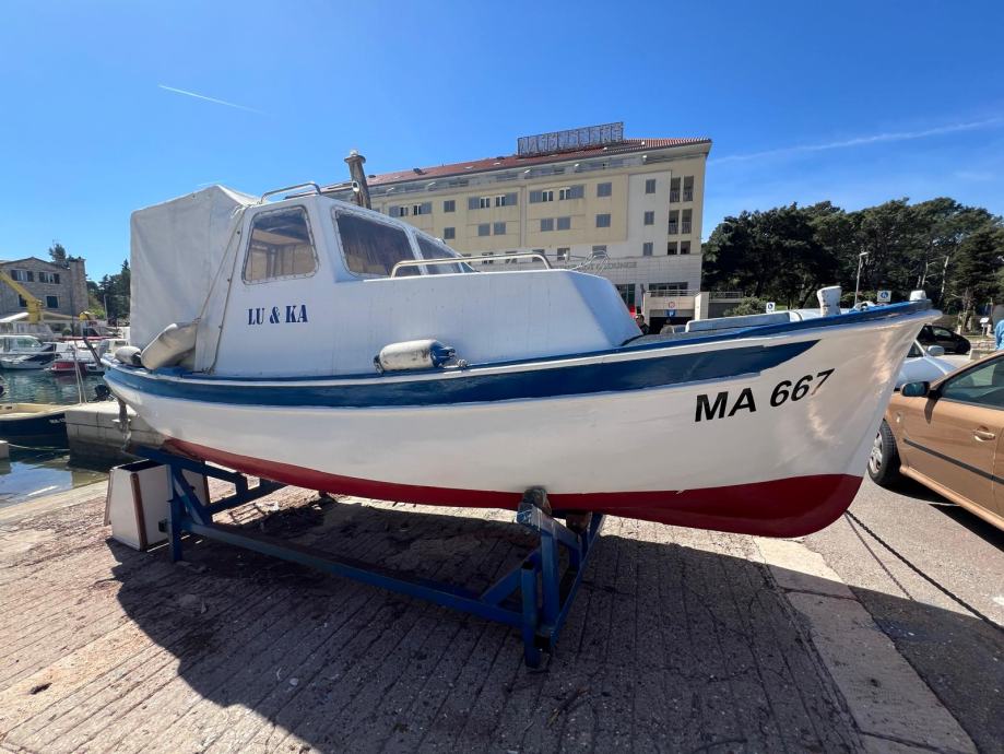 Prodaje se drvena Pasara sa plastificiranom kabinom, dužine 5.5 m, širine 1,95 m, ispravnim Torpedo dizel motorom, potrošnje do 2 litre na sat. Brodogradilište Omiš. Težak 920 kg.