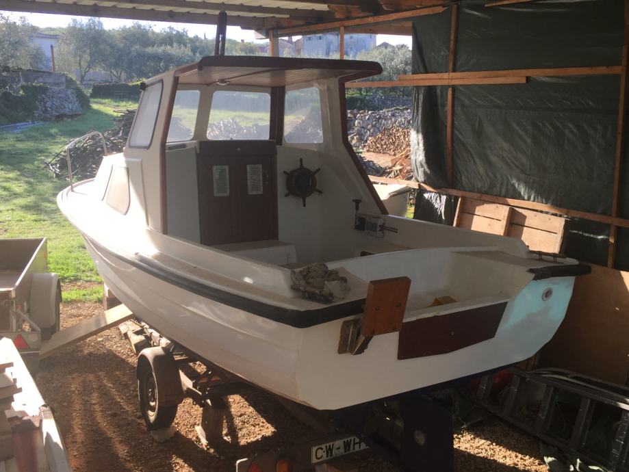 Barka je generalno uređena(kompletno farbana, izrađena je drvenarija, novi pleksi prozori...) nije bila u moru 9 godina i od tada je u natkrivenom suhom prostoru. U barci je ugrađen motor, sa svom potrebnom instalacijom, stariji tip Volvo 14 ks dva cilindra , paljen svaka dva mjeseca i malo vožen uglavnom po jezeru. Uz barku u cijeni je prikolica i Merkury vanbrodski motor.