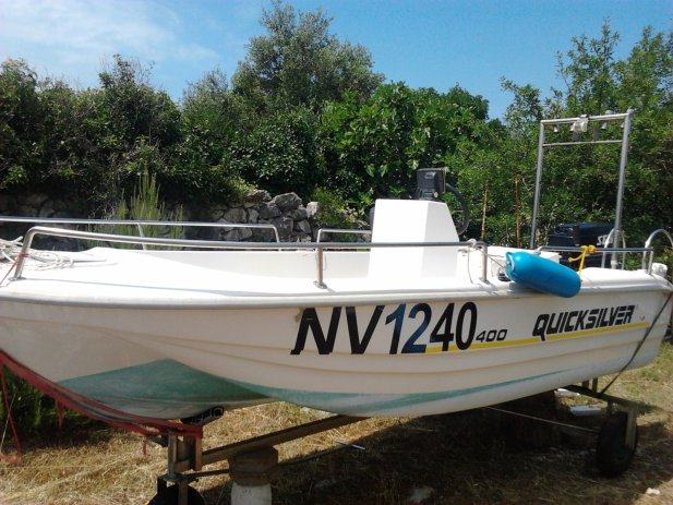 Quicksilver 400,mali fisherman,2000g.bez motora,izuzetno stabilan,dorađen za ribolov,konzola,volan,ograda,spremišta.jastuci,prirucna prikolica....,reg.trajno,kat.B,moguće vidjeti na Lunu(Novalja).....0915260076