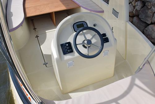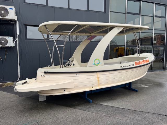 Prvi naš susret s brodicom Solmar 600 bio je daleko od sunca i od mora, na sajmu nautike u Zagrebu, gdje je ta barka bila izložena u hali, na suhom. Murterino smo testirali pred dosta godina, ali tada je barka bila opremljena brodskim dizelskim motorom, te kabinom i natkabinom. Sada stvari izgledaju drugačije. Ovdje je trup Murterina samo poslužio za realizaciju projekta Solmar 600, tako da je na njemu napravljeno potpuno novo nadgrađe prilagođeno za elektropogonjenu brodicu sa solarnim panelima na plastičnom krovu. Deplasmanac koji je bio potreban za realizaciju Solmara 600 pronašao se u trupu Murterina, s time da je zbog potrebe ugradnje čak četiri panela barka izvedena kao brodica otvorenog kokpita s tvrdim krovom. Iako je trup Murterina projektiran da može ploviti i u poludeplasmanskom režimu, u ovoj kombinaciji to nije bilo potrebno. Trup je sa svojih 6 metara vodne linije uključujući i krmenu platformu, dobra mjera onoga što treba Solmaru 600 za ekonomičnu plovidbu. U plovidbi sa 6 čvorova pramac lijepo razgrće more, i lijepo se ponaša u plovidbi.