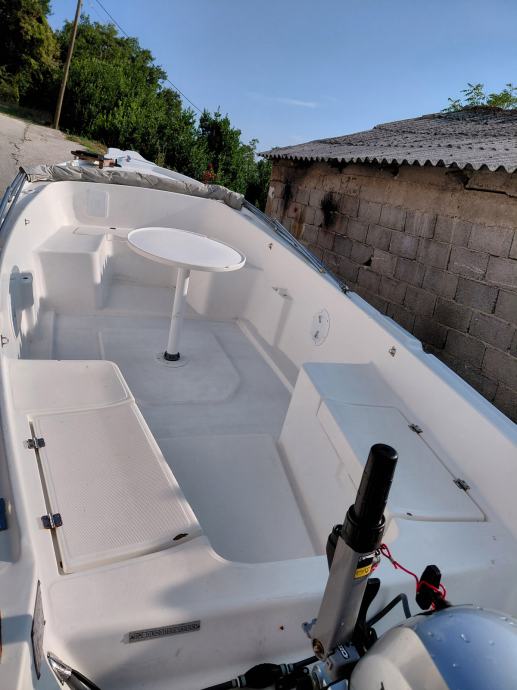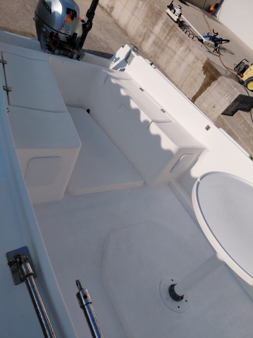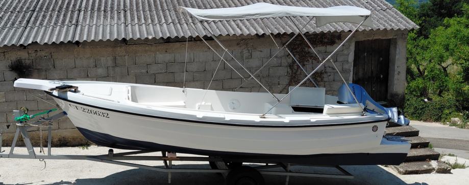 Barka očuvana, motor održavan, 200 sati rada cca, putna brzina 12/13 NM, na fulu preko 15.Kopkit samosekajući u dvodnu kaljužna pumpa.Trajno registriran, papiri i vlasništvo uredni1/1. Prodajem samo u kompletu, cijena 10400 eur.Nije fiksno! Mob : 091 6199 524