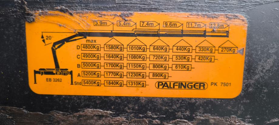 Kran ima 5 hidrauličkih izvlačenja + vitlo, ukupne dužine 14 metara, a sanduk utovarnog prostora je dugačak 4,5 metara.