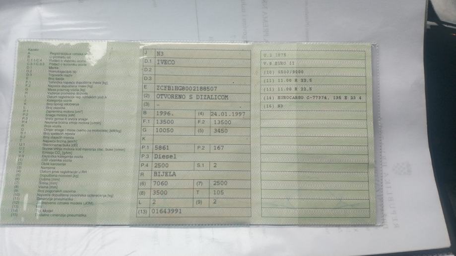 Iveco 135e23 , 1996. godina, 285000 km , 4x4 pogon , kran HAK 12 , dva hidraulična i dva ručna izvlačenja , prednji i zadnji stabilizatori , sandučar . Prednje hidraulično vitlo , kamion odličan , u sustavu pdv-a , cijena 11900 eura , mobitel 091-253-9838