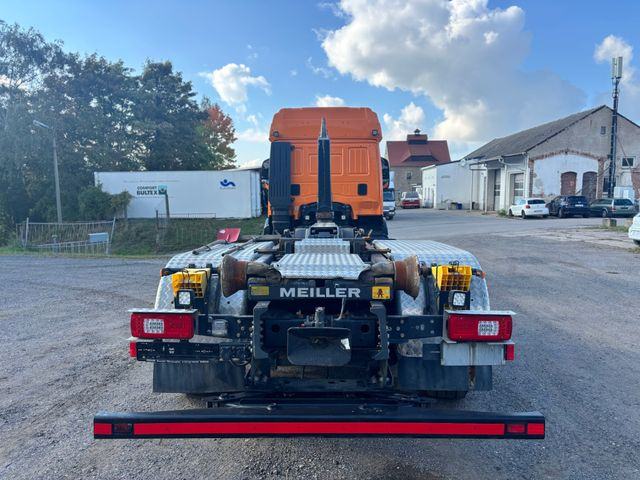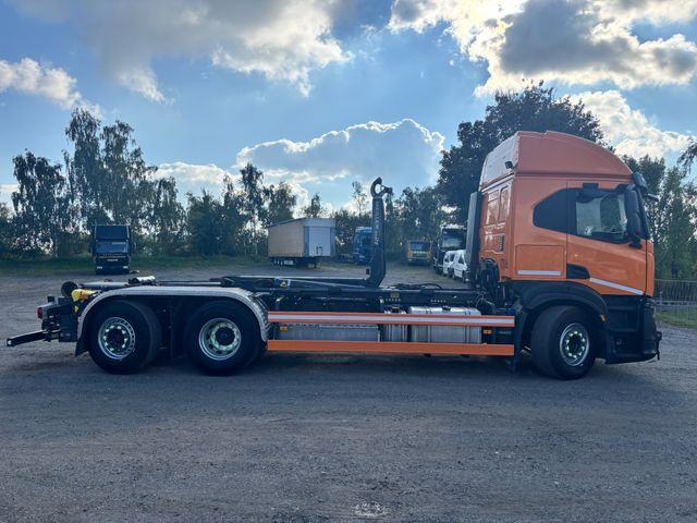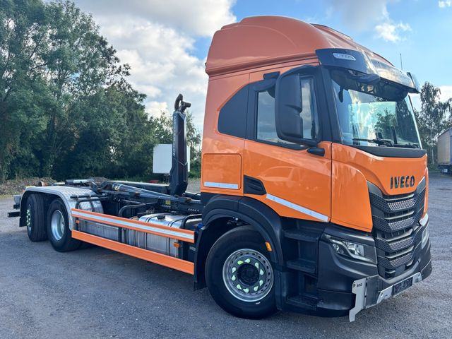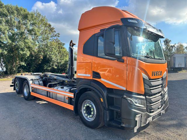 Iveco X-Way AT280XY/PS 6x2, abroll kiper, Meiller RS21 sa radio daljinskim upravljanjem, u prometu od 11/2022, Euro6, AdBlue, ABS, EBS, ESP, jastuci straga, 3. osovina podizna i zakretna, automatik, retarder, hidraulično zaključavanje vijkom, HUFS: Izvlačna zaštita od podlijetanja Meiller USR-RK-03, blokada diferencijala, spurhalteassistent, tempomat, automatska klima, webasto, radio CD, navigacija, spavaća kabina, frižider, kuka za prikolicu, NDM: 26.000 kg, masa praznog vozila: 11.680 kg, nosivost: 14.320 kg, međuosovinski razmak: 4.800 mm, gume: 385/65 R22,5 ; 315/80 R22,5.
