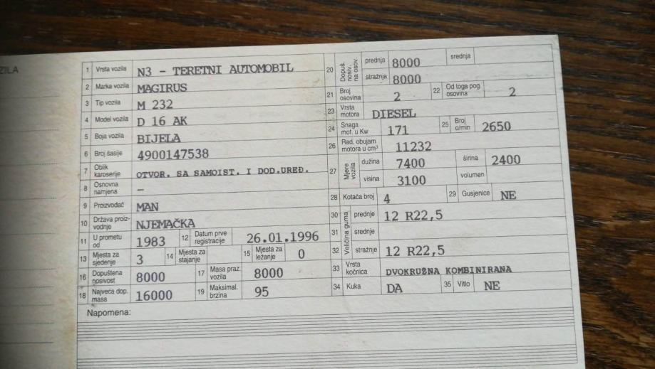 Prodajem rabljeno vozilo: MAGIRUS M232