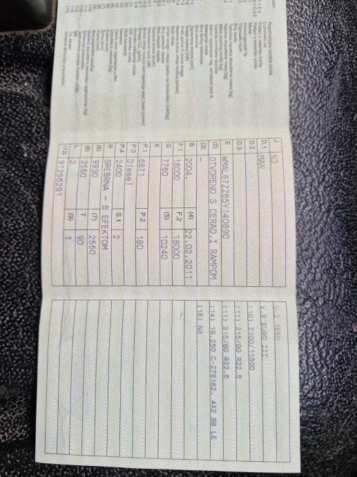 Prodajem rabljeno vozilo: Man 18.250 uto. Rampa 10.250 kg nosivost