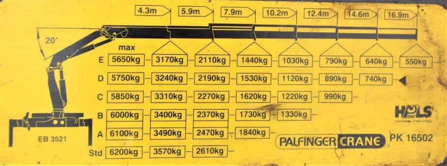 - Kamion s kranom: Palfinger, Model: PK 16502