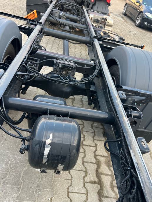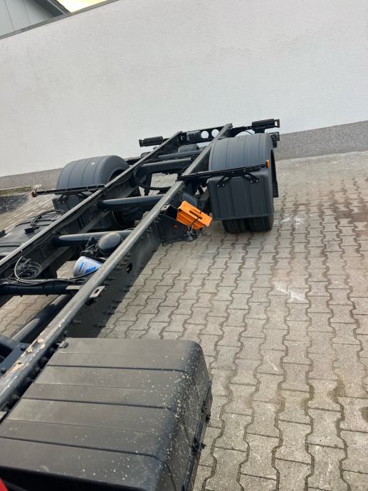 Čisto i očuvano šasijsko podvozje – idealno za ugradnju krana, kontejnera, platforme ili druge nadogradnje.
