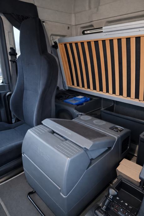 Sanduk s rampom dužine 7.2m, unutarnja visina 3m, zračni jastuci na obje osovine, spavaća kabina 1 krevet, frižider, klima, tempomat, automatik 12 brzina, registriran