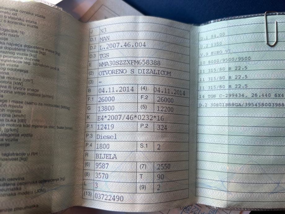 Prodajem rabljeno vozilo: MAN TGS 26.440 sa kranom Palfinger PK 18500