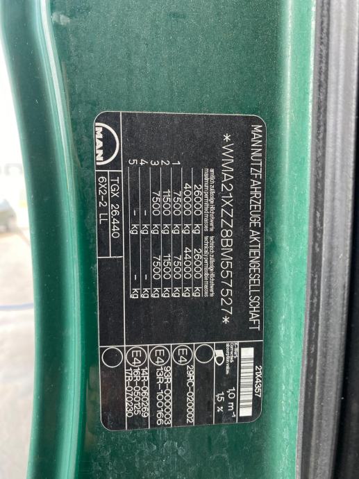 Prodajem rabljeno vozilo: MAN TGX 26.440 EEV 6x2, retarder, rampa, ručni mjenjač