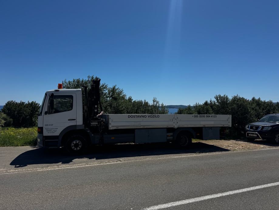 Prodajem Atego s Kranom Hiab 085-3 hidraulicna izvlačenja,sanduk 6.3m,kamion je bez ulaganja te je originalni sandučar s kranom stvarnih 160tkm,cijena 17000 s pdv moguča zamjena za Kombi..