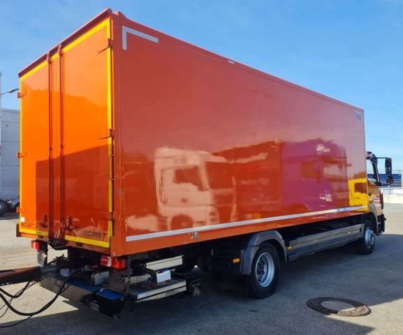 Mercedes-Benz Atego 1221 L, 4x2, kofer, u prometu od 08/2019, Euro6, AdBlue, ABS, EBS, jastuci straga, automatik, motorna kočnica ( 2 stupnja ), tempomat, 2 sjedala, rampa BÄR 1500, nosivosti 1.500 kg, radio CD, krovni spojler, krovni otvor, stražnja vrata, grijana komforna sjedala, rezervni kotač, kuka za prikolicu, dimenzije tovarnog prostora DxŠxV: 7.200 mm x 2.490 mm x 2.370 mm, za 18 europaleta, volumena 42 m³, NDM 11.990 kg, gume: 265/70 R19,5, ( cca 6 - 10 mm ).