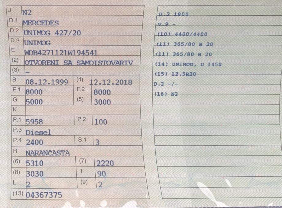 Prodajem rabljeno vozilo: MERCEDES UNIMOG U1450