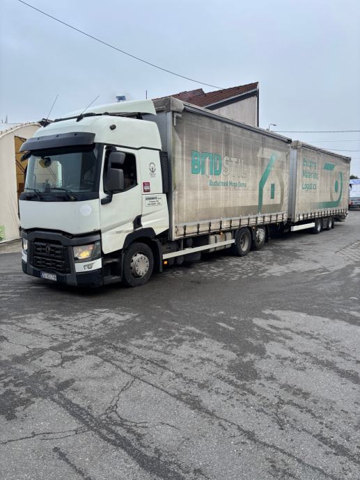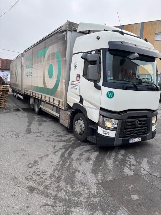 Renault T460.26 sa jumbo prikolicom Krone 8,2x2,48x3,00m. Solidno stanje. Servisiran u ovlaštenom servisu. Cijena je za kamion i prikolicu skupa. U cijenu je uključen PDV.