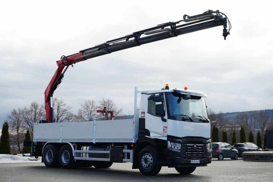 Renault T 430 kamion s ravnom platformom+kran/IMP-3789, 2016 god.