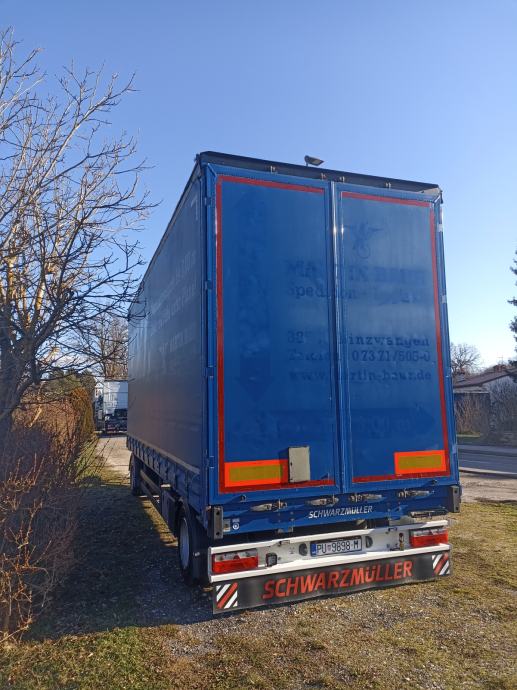 SCANIA R450, 11/2017. 370000km, napravljen servis prije 500km, registrirana do 12/2026. podizna i zakretna 3. osovina, sanduk SCHWARZMULLER dimenzija 7300x2480x2850. dopuštena nosivost 14740kg, taho nove generacije, stanje odlično + prikolca SCHWARZMULLER 2017. godina, dimenzije sanduka 7300x2480x2950, rolo bočna cerada i krov.