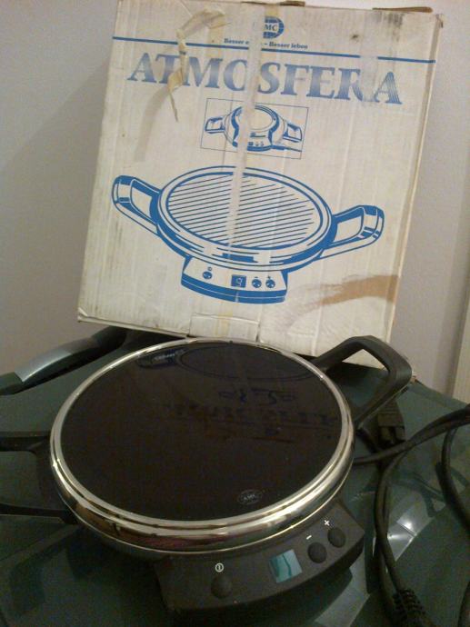 Prodajem Atmosferu iz kompleta AMC-ovog posuđa, koristi se za pečenje ili zagrijavanje jela ili fondue, bilo gdje gdje postoji utičnica, a kao poklopac za AMC-ovo posuđe je najbrži i najekonomičniji način pripremanja jela. Stariji tip, NIKAD KORIŠTEN!