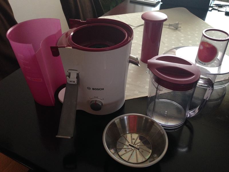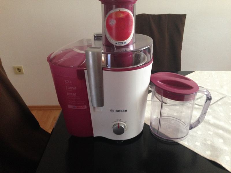 prodaje se sokovnik Bosch-kao na slici. Korišten nekoliko puta, kao nov. Tamnocrvene boje-bordo, za extra velike komade voća, jednostavan za održavanje, svi dijelovi se mogu odvojiti i prati u perilici suđa.