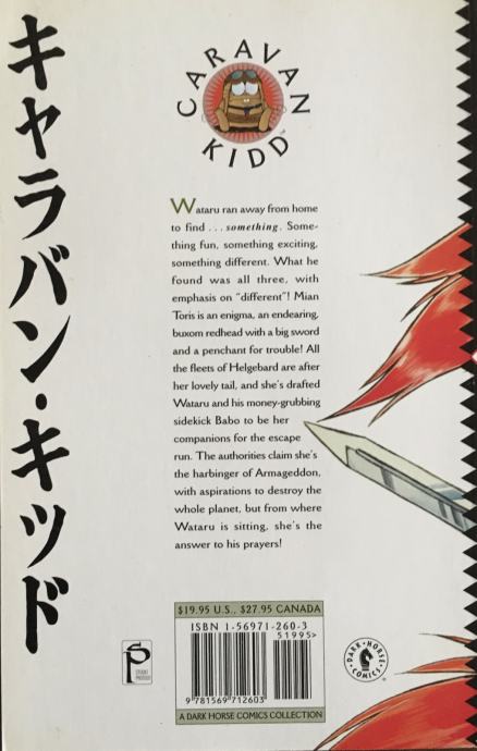 Caravan Kidd (キャラバン キッド, Kyaraban Kiddo) is a shōnen science fiction manga by Johji Manabe. Wataru and his partner Babo, two black market merchants with no morals to speak of, get caught up in a battle between the Helgebard Empire and the mysterious girl Mian Toris. To reward Wataru for saving her life, Mian collars both Wataru and Babo and declares them to be her pets. While dragging them across the continent, they learn that Mian's destination is a head-on confrontation with Shion, the empress of the Helgebard Empire itself, at Kyuraweil Keep.