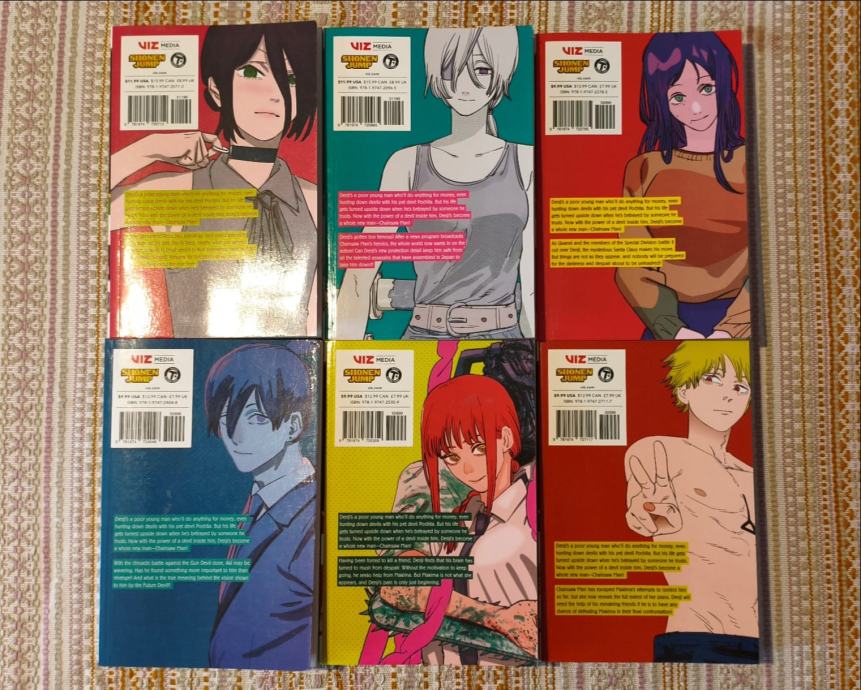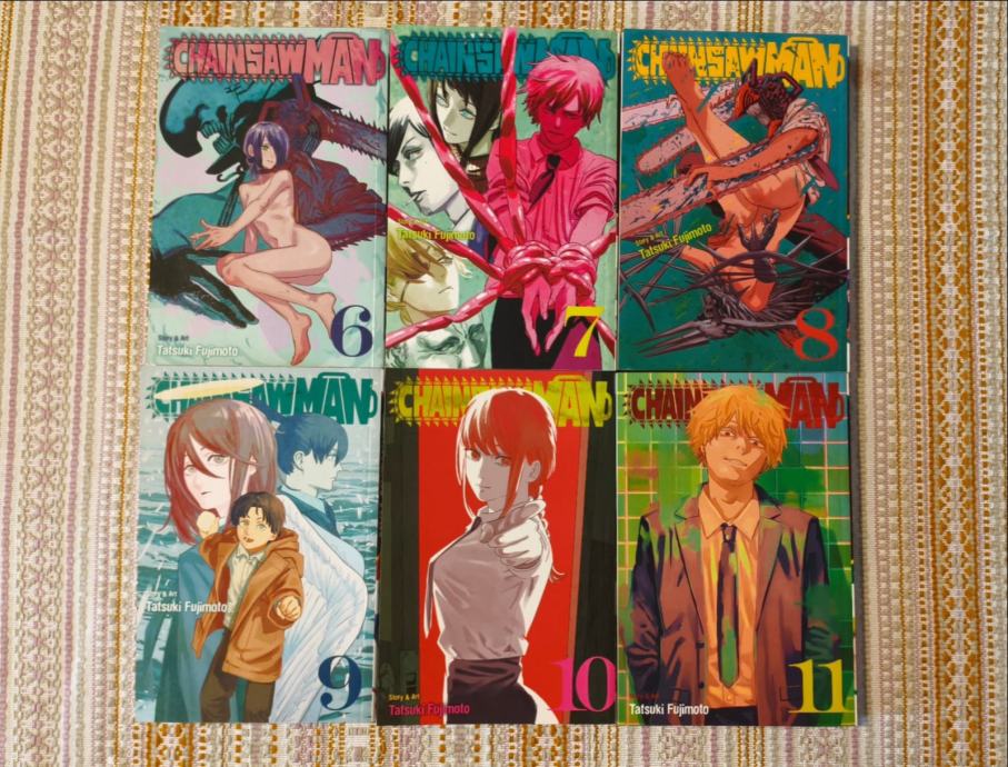 Prodaju se u kompletu nastavci mange Chainsaw Man na engleskom jeziku od 6. do 11. dijela. Jedanput pročitano i dobro očuvano!