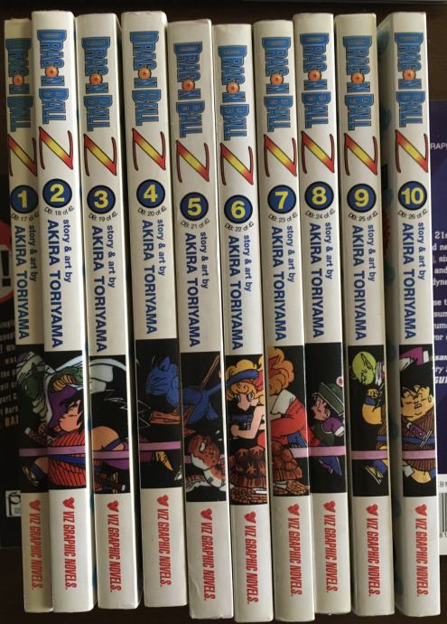 Kultna manga Akire Toriyame DRAGON BALL Z u 10 knjiga, crno-bijelo, format 21 x 14,5 cm, nakladnik Viz. Manga orjentacija čitanja.
