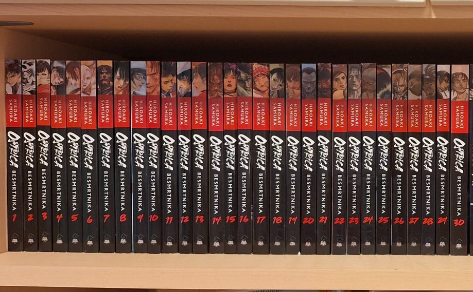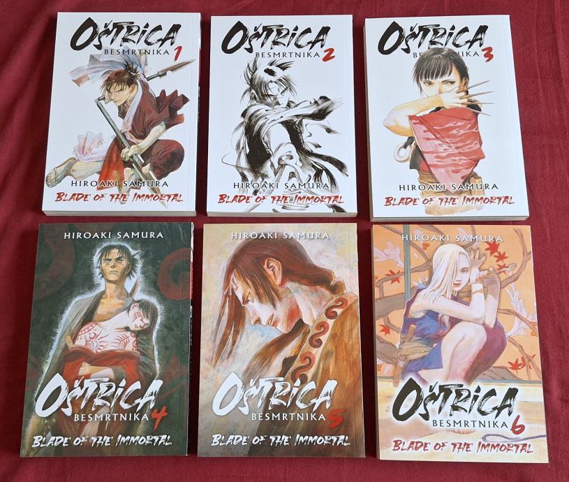 Manga Oštrica besmrtnika, autor Hiroaki Samura, izdavač Čarobna Knjiga d.o.o., kompletna serija od br. 1 do 30. Svi svesci su novi i nepročitani, cijena za cijeli komplet 100 eura.