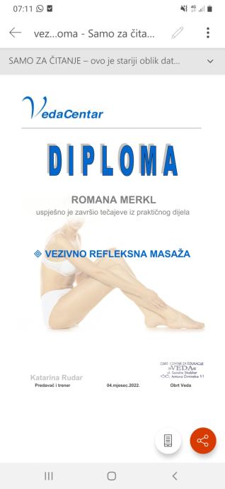 Obrt s educiranim osobljem obavlja usluge masaze u vlastitom prostoru na fiksnom ili u Vasem domu,na prijenosnom sklopivom stolu.(Zagreb i okolica).Parkiralisno mjesto je osigurano,a objekt se nalazi 4 min.od tramvajske stanice.Odmorite i izlijecite svoje tijelo i duh jer zdravlje je,kao sto svi znamo,ipak na prvom mjestu..(60 minuta klasicne masaze(leda,noge,ruke) stoji 30 eura,medicinske 40e,a pola sata 20e).Pogodnost : Radno vrijeme je i vikendom i praznikom, od 8 do 21 sat.Dođite ,opustite se,ozdravite..Ni blizu stresu : Na ovu adresu ! :-)(Klimatiziran prostor).