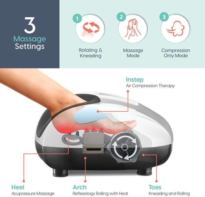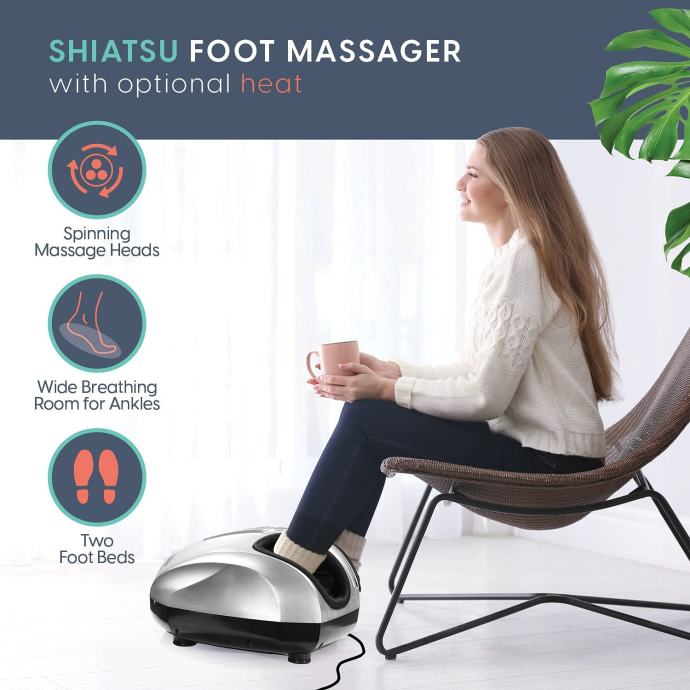 Bol u stopalima se topi sa snažnim valjcima u ovom električnom grijanom masažeru za stopala i on je savršen dar za Božić, rođendane i ostale prigode. Toplina u električnom masažeru stopala poboljšava cirkulaciju, ublažava bol kod stajanja/hodanja, neuropatije, artritisa, simptoma dijabetesa i drugih bolesti.