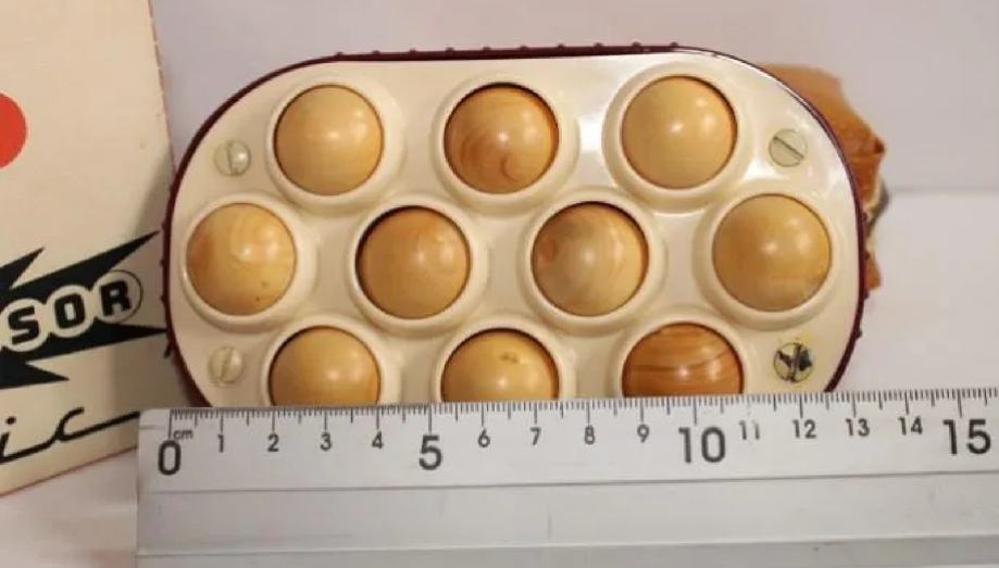 Buimassor Clinic, vintage ručni masažer iz 1960-ih, drvene kuglice