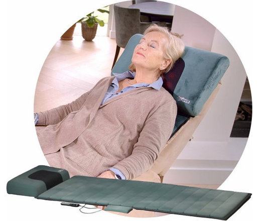 Grijana masažna prostirka s 8 masažnih motora i 3 grijaće ploče masira, grije i opušta vrat, leđa, lumbalnu regiju i noge. Doprinosi smanjenju bolova u mišićima i zglobovima, potiče cirkulaciju, smanjuje stres i napetost dok istovremeno toplinska terapija ugodno grije cijelo tijelo.