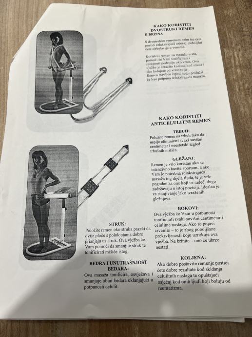 Prodajem vrlo malo korišten aparat za masažu Amerika Star, napravljen u Italiji. Uz masažer dolaze četiri različita remena koji se vide na slici (dvostruki remen, anticelulitni remen, turbo rullocell remen, remen 'tisuću prstiju'). Masažer se može sklopiti, ima dvije brzine, a remeni se lako mijenjaju. Može se koristiti za masažu bolnih nogu, vrata i leđa te za anticelulitnu masažu stražnjice i bokova. Više detalja i ideja za korištenje možete pronaći u originalnom priručniku koji dolazi uz aparat. Vrlo je jednostavan i ugodan za korištenje. Malo je korišten i prodaje se za 40 €. Preuzimanje u centru Zagreba, za dogovor nazvati broj telefona naveden u oglasu.