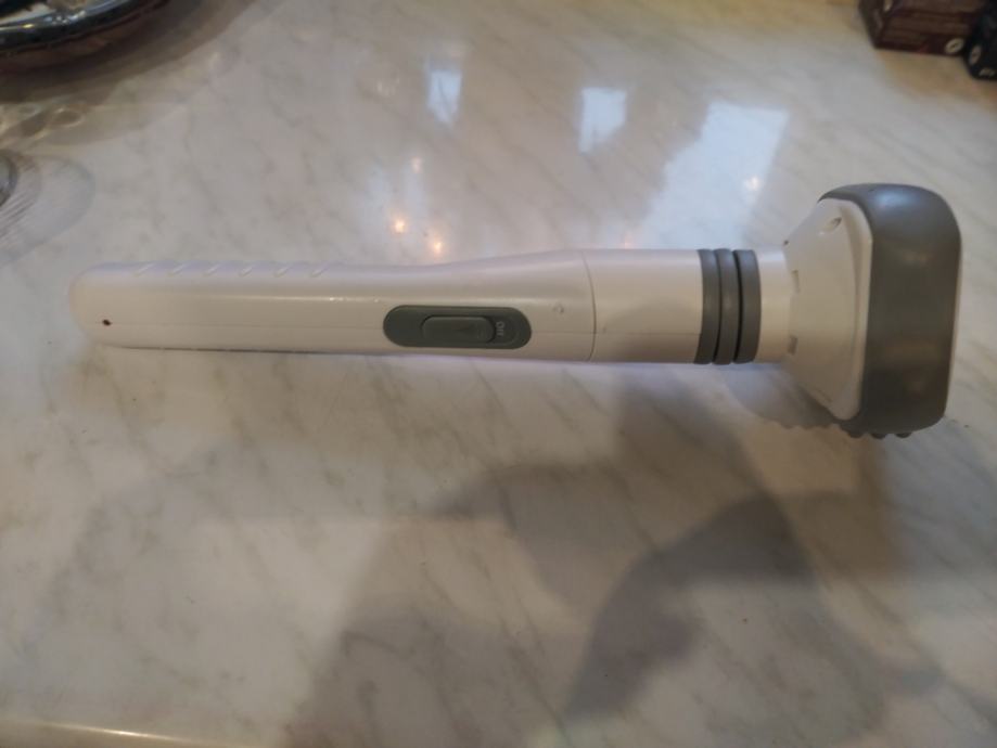 Prodajem ručni masažer, POTPUNO ISPRAVAN i NOV. Masažer je posebno pogodan za samomasažu, a masirati se može i preko odjeće,ima fleksibilni zglob pa je pogodan za samomasažu leđa. Masažer ima punjivu bateriju i dolazi s originalnim punjačem.